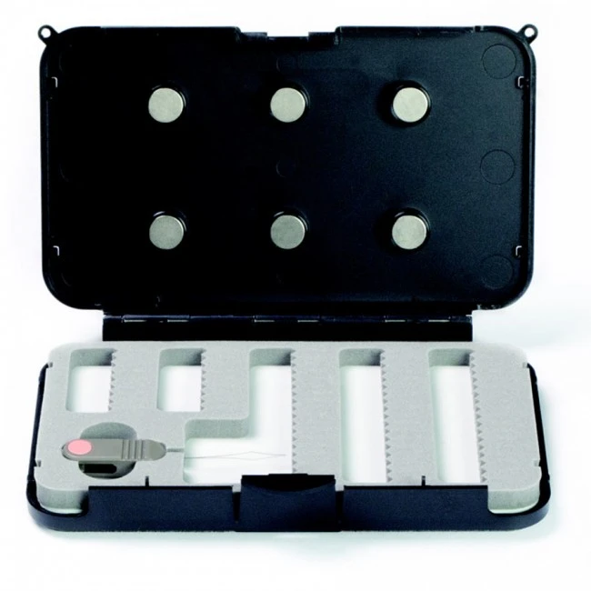 - A magnetic dot and foam on the cover function as temporary fly holders