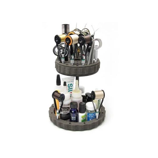 Using this double-decker tool caddy, organize your tying tools, chemicals and glues