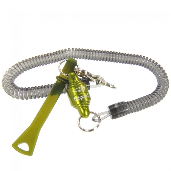 - plastspiral som går att dra ut till en längd på ca 180cm och som håller håven på plats när du står i strömmande vatten