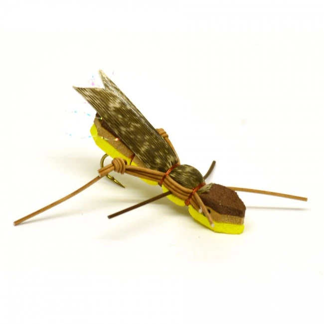 En suverän imitation av en gräshoppa. Kan även användas som nappindikator. Består till 98% av foam vilket gör flugan osänkbar.