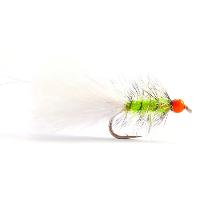 Otroligt effektiv fluga för fiske i put & take vatten. Fluorocerande marabou, dubbing och även skallen är fluo.