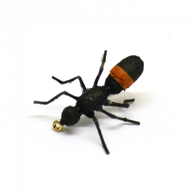Mycket realistisk imitation av en myra. Svårt att se skillnaden från en äkta. En måste fluga för höstfisket efter harr och regnbåge.