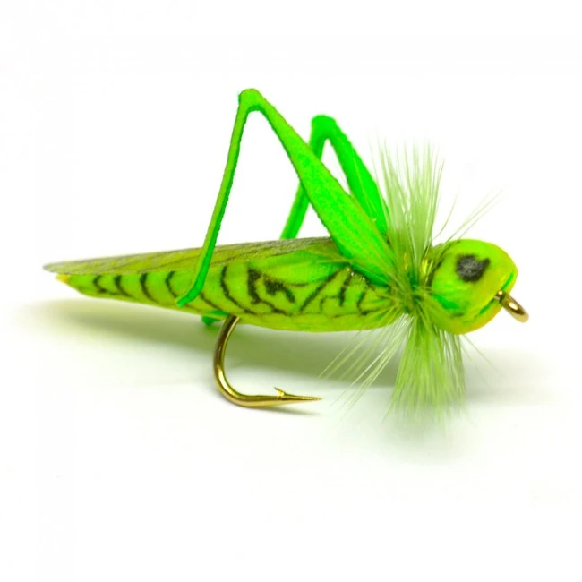 Mycket realistisk imitation av en gräshoppa. En fluga som är speciellt bra i slutet av augusti till sent i september. En fluga som skall finnas i asken om man skall till Nya Zeeland.