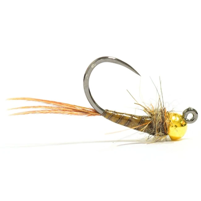 Bra flugmönster när man skall nå de där stora fiskarna som står på botten i en djup pool. Använder gärna detta mönster som en ankarnymf. Guldfärgad tungstenskalle på deaa nymfen.