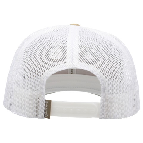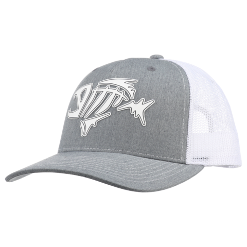 A mid-profile, 6-panel trucker hat with a pre-curved visor is featuring the iconic Gloomis skeleton fish welded onto the front two panels. A cotton/poly blend on front panels and nylon mesh for the side and back panels create a comfortable feel and fit. Other features include a cotton sweatband, pre-curved visor, and adjustable snapback closure.