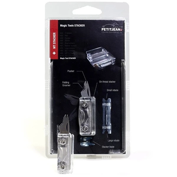 The NEW Marc Petitjean Stacker and folding Groomer Tool. A combination of RAKE and PLUCKER. Specially shaped to groom CDC and achieve tange free wings an hackles.