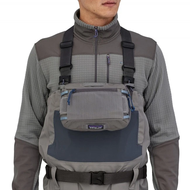 Easy-adjust straps attach to wader chest straps for minimalist, on-the-go gear storage