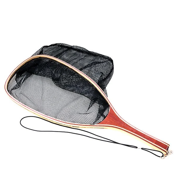 Snygg trähåv med knutlöst svart catch & release nät. Används håven som Catch & Release håv räcker den för fisk upp till ca 4kg. Snabbfäste för att fästas på flugvästens D-ring ingår, likaså en gummisnodd.