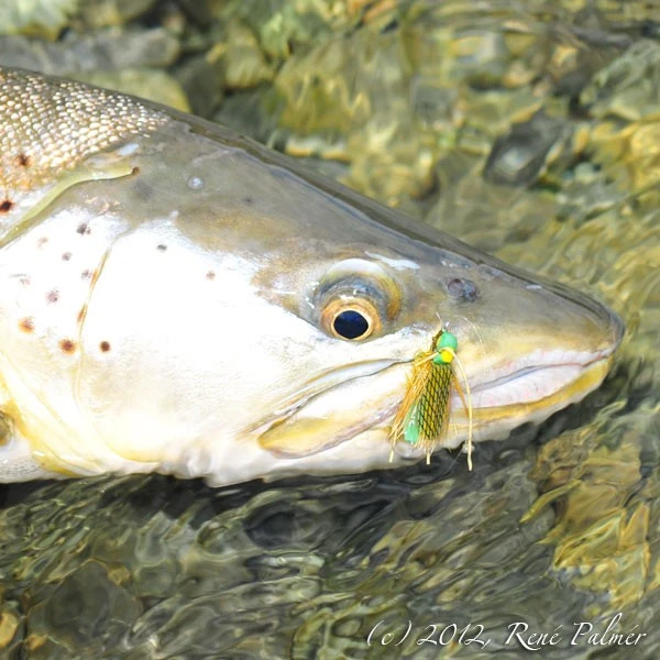 Fungerar även på grov stationär öring på Nya Zeeland som synes på bilden.