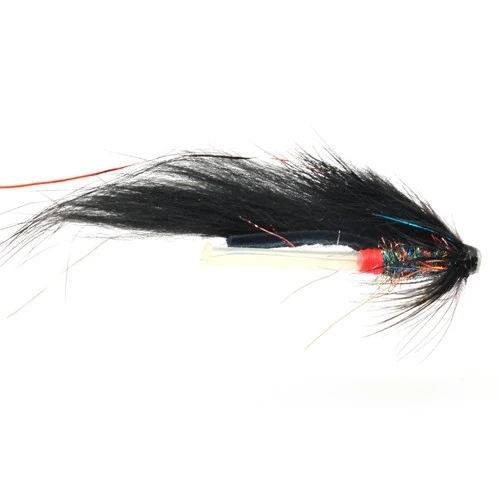 Nattfiske är kanske det mest spännande flugfiske man kan vara med om. Denna tubfluga bunden på plasttub fiskas högt i vattnet i jakt på havsöring. Längd ca 5-6cm.