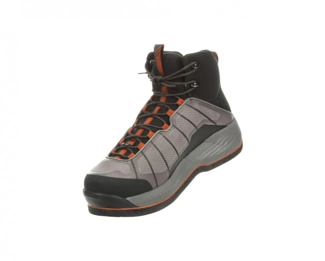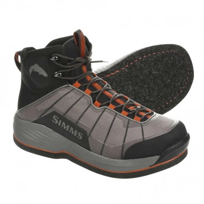 Simms Flyweight vadarskor med filtsula. Detta är skon för den som vill ha bra grepp i vattnet samt en riktigt lätt sko. Modellen med filtsula är mycket populär bland dem som fiskar mycket på kusten över sand och blandbottnar. Tänk på att detta är en lättviktssko! Skall ni utsätta skorna för väldigt tuffa tag, dvs vadning bland stora vassa stenar, så välj en annan av Simms skor istället.