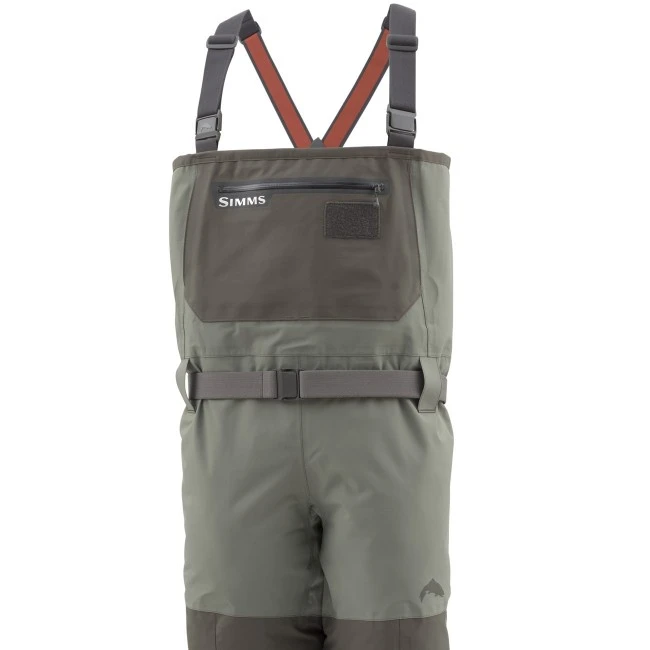 Simms’ Freestone® Stockingfoot Wader is your go-to companion from first cast to lasting obsession. Durable, breathable four-layer Toray® QuadraLam™ fabric handles brushy approaches and cold wet weather, while the articulated fit promotes natural mobility both on the trail and in the water. When it comes to small details that make a big difference, the Freestone includes a large fleece-lined, reach-through handwarmer pocket to heat up cold fingers, a secure chest pocket to hold essential tools, and a dedicated fly patch for sidelined flies.