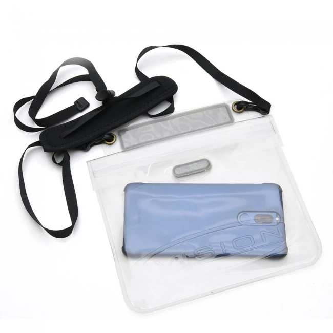 Waterproof pouch for your valuables. Can be used as a separate item with comfortable neck strap or can be attached to a Vision wader with built in velcro strap.